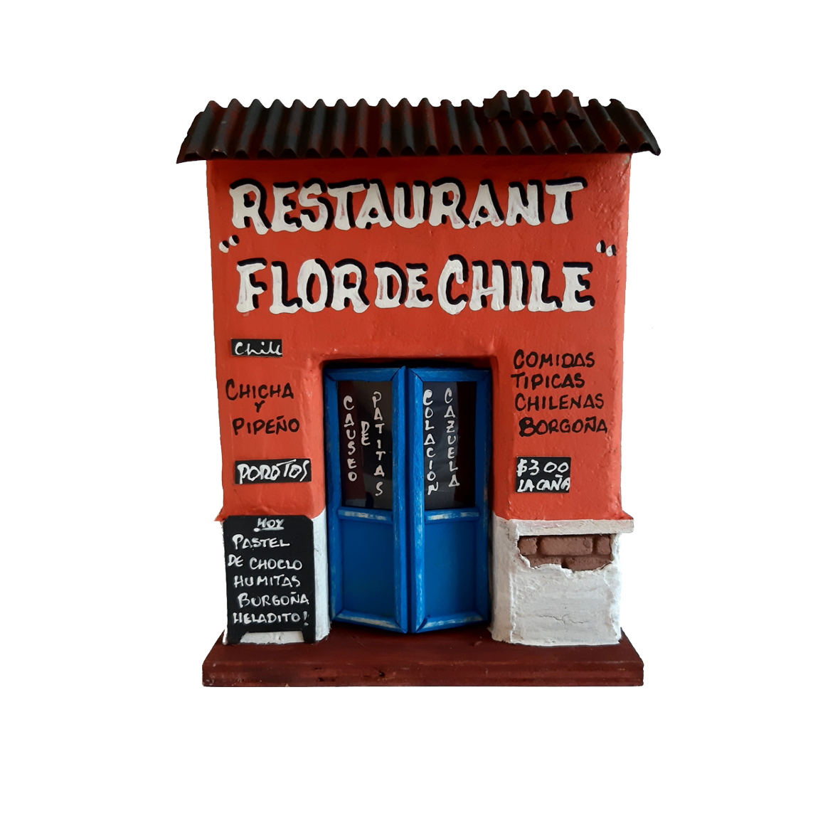 Retablos fabricados con materiales reciclados y reutilizados pintados a mano, inspirados en en fachadas típicas y representativas de Chile, tales como: